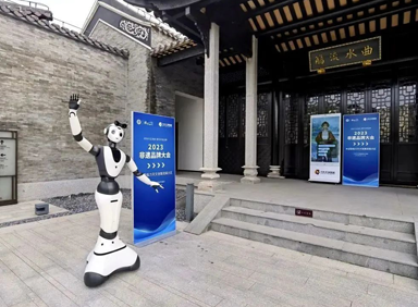 3月24日,由文化和旅遊部與廣東省人民政府共同主辦的「2023非遺品牌大會(huì)」于廣州文化館盛大開幕。力天文創(chuàng)集團(tuán)攜手達(dá)闥機(jī)器人在翰墨園設(shè)立「非遺+科技」展示區(qū),帶來智能人形機(jī)器人、智能數(shù)字人、數(shù)字新媒體、國潮新文創(chuàng)等成果案例,于精巧秀麗的嶺南園林中,獻(xiàn)上一場科技與古典交相輝映的「非遺盛宴」。