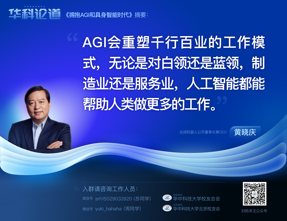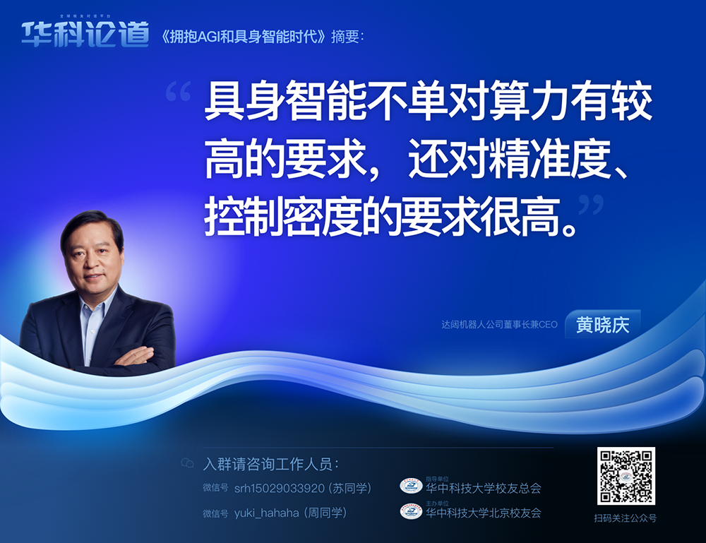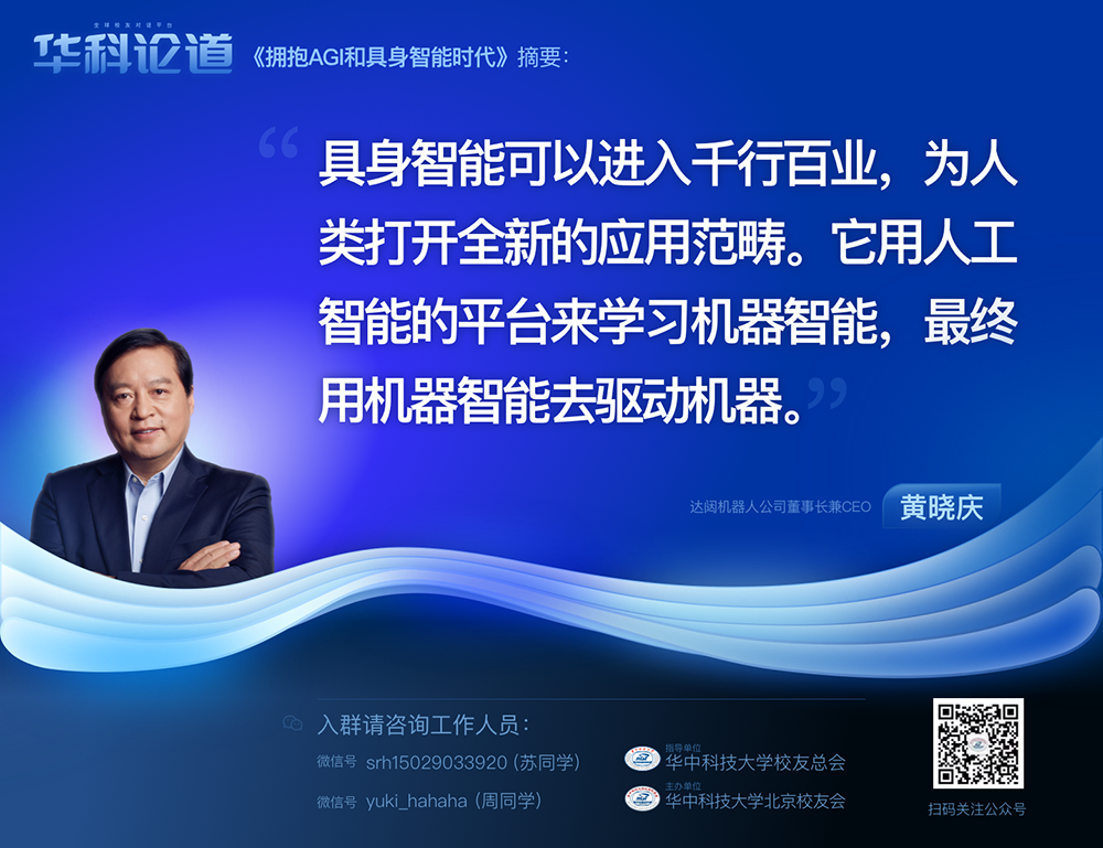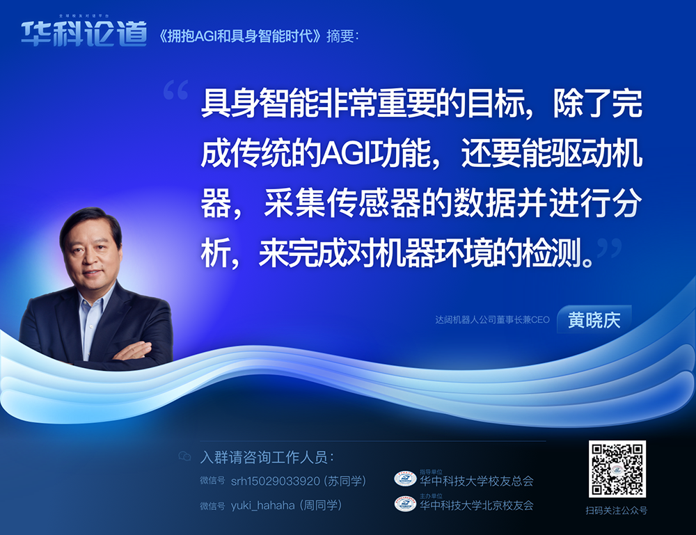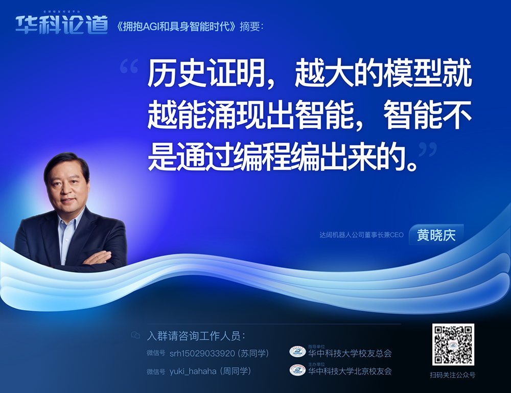 1月30日,在第五十五期「華科論道」上,由華中科技大學(xué)北京校友會主辦的活動迎來了一位特別嘉賓——達闥機器人公司董事長兼CEO黃曉慶先生,他帶來了「擁抱AGI和具身智能時代」的主題演講,為廣大校友帶來了精彩紛呈的分享。