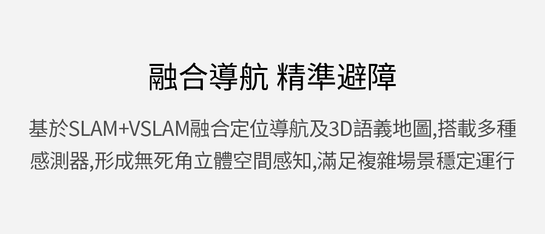 基於SLAM+VSLAM融合定位導航及3D語義地圖,搭載多種感測器,形成無死角立體空間感知,滿足複雜場景穩定運行