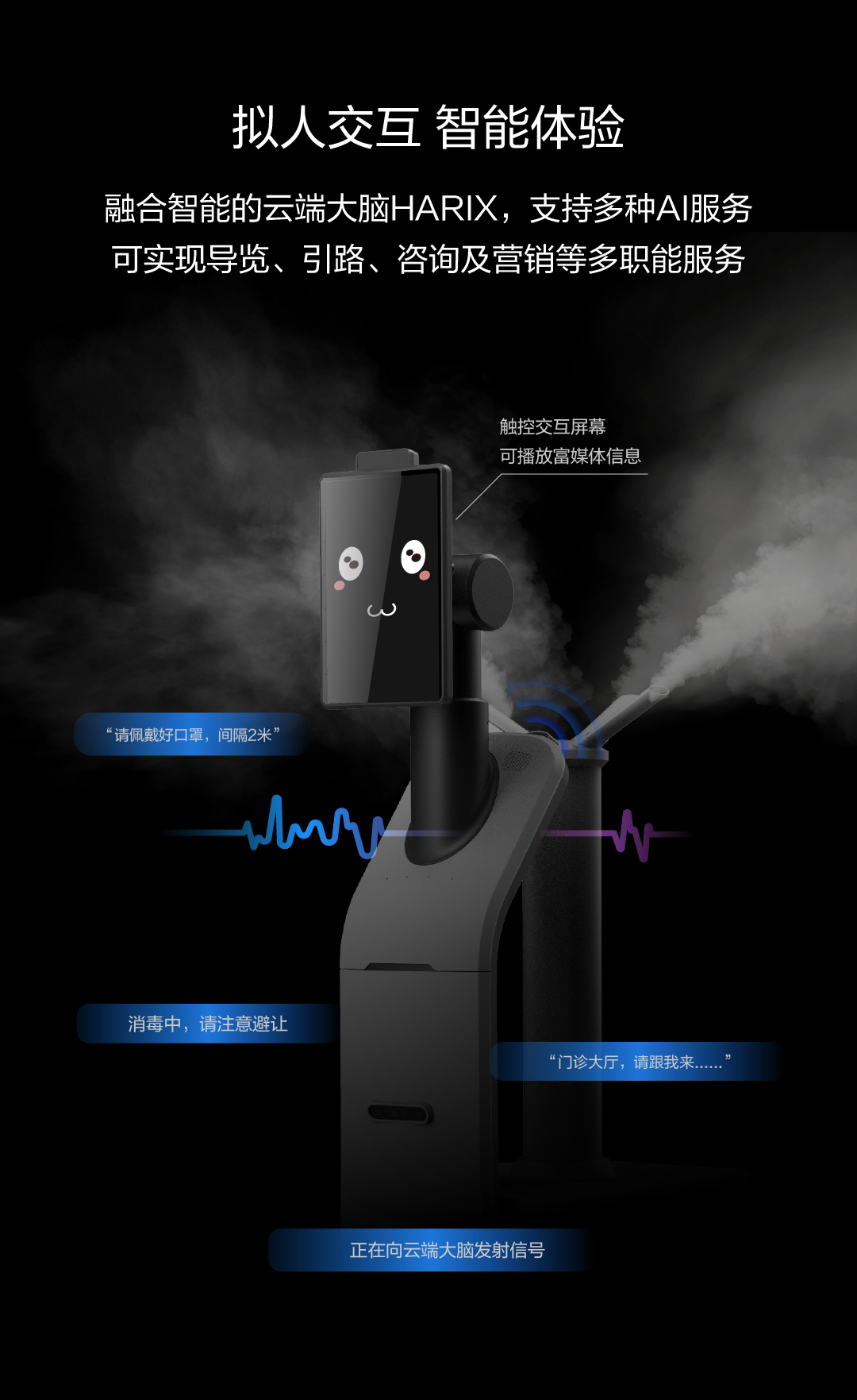 融合智能的云端大腦HARIX支持多種AI服務,可實現導覽、引路、咨詢及營銷等多職能服務