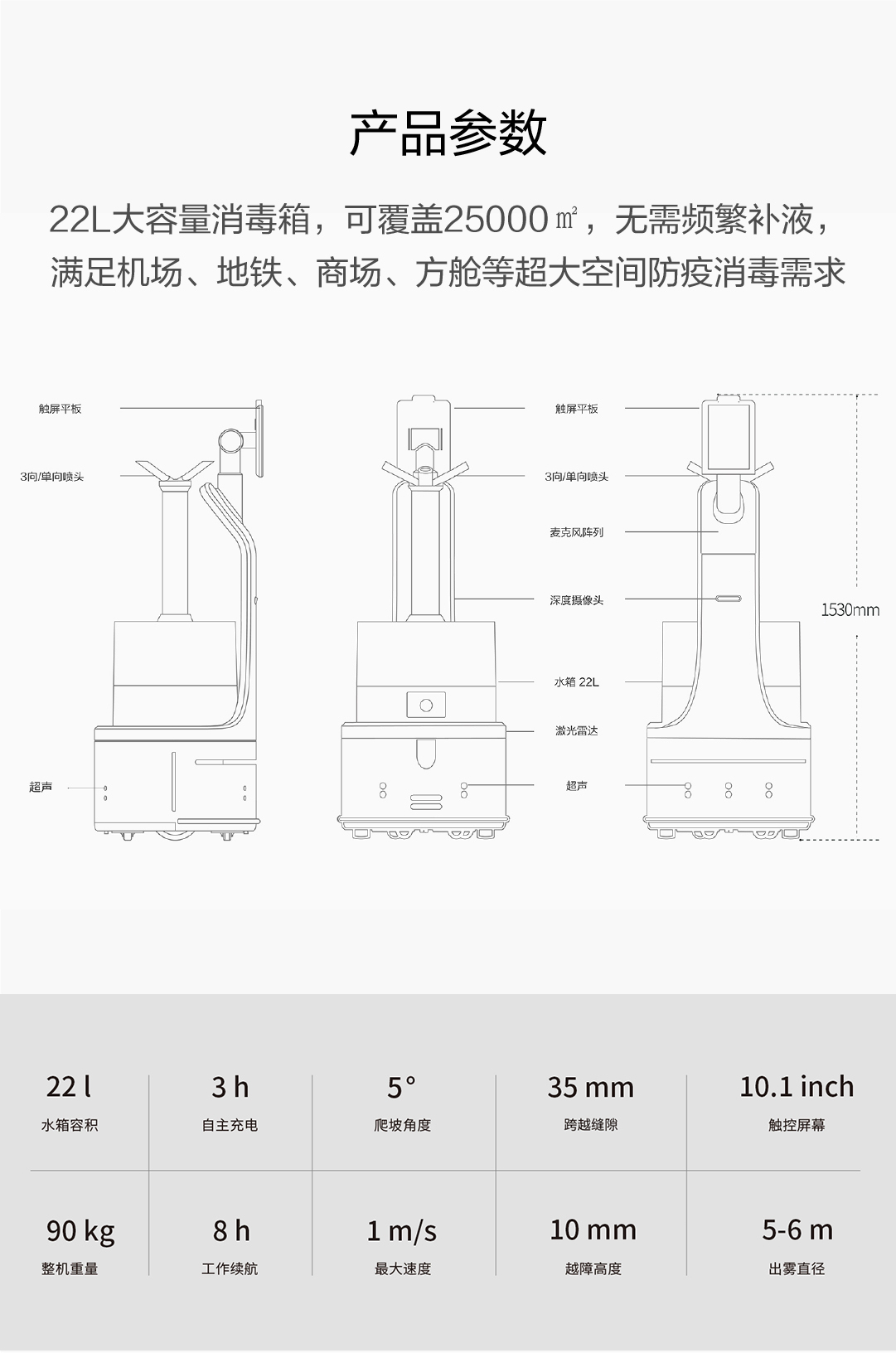 22L大容量消毒箱,可覆蓋25000㎡,無需頻繁補液,滿足機場、地鐵、商場、方艙等超大空間防疫消毒需求
