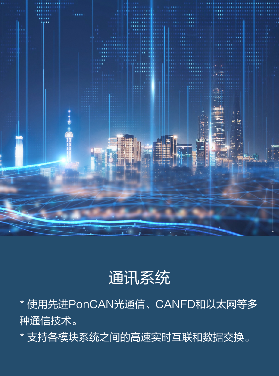 * 使用先進PonCAN光通信、CANFD和以太網等多種通信技術。